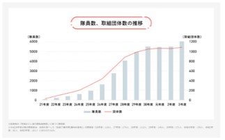 令和3年度で約6,000名の隊員が全国で活動していますが、この隊員数を令和8年度までに10,000人に増やすという目標を掲げており、この目標に向け、地域おこし協力隊等の強化を行っています。