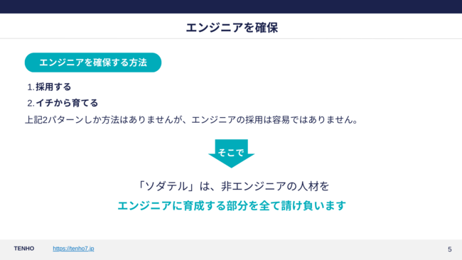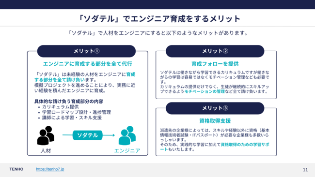 株式会社TENHO(本社:東京都渋谷区、代表取締役社長:新堀光樹)は2022年8月に設立され、派遣できる人材にまでエンジニアを育成する「ソダテル」と呼ばれるプログラムをローンチしました。