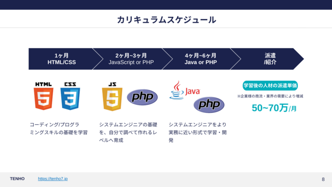 本サービスでは、派遣先で求められるエンジニアのレベルに合わせたカスタマイズ可能なカリキュラムを提供しております。