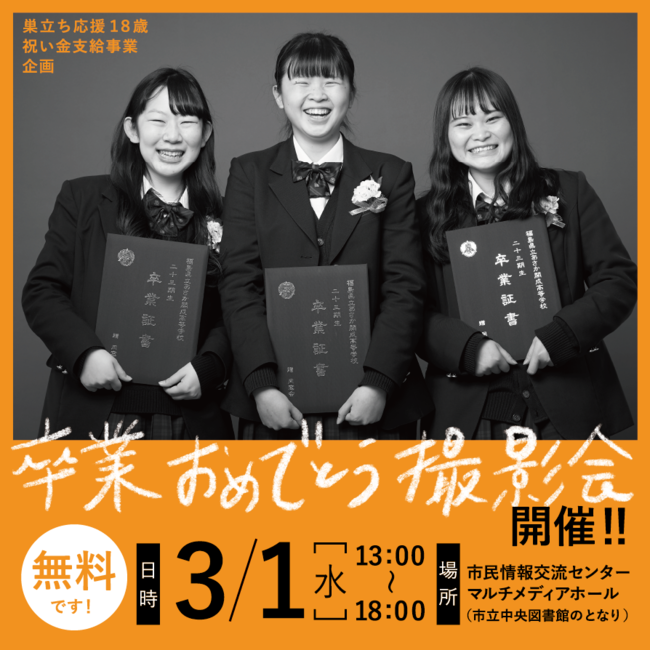 名称:巣立ち応援18歳祝い金支給事業企画 卒業おめでとう撮影会
