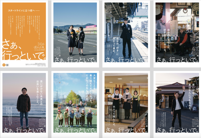 本事業の対象者となる南相馬市の高校生の他、18歳を応援する地域住民の方6組をモデルとして起用し、令和4年11月に本市内で撮影。「さぁ、行っといで」のコピーと共に応援の言葉を載せた全8種類のポスターが完成いたしました。