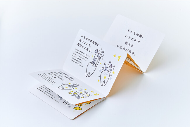 「防災の楽しさを、世界中のみんなに。」をコンセプトに活動しているNPO法人プラス・アーツと約2年間にわたり企画・構成を繰り返し共同開発しました。特に著名な方々に監修していただいた冊子とヤマトエスロン(株)の基盤技術である歯ブラシは細部にまでこだわりました。