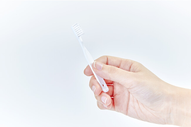 歯ブラシを水洗いできず使い捨てする事も想定し、ハンドル部分を従来製品の約4分の1の重さ(当社製品比較)に設計し、環境に優しい素材を使う事で、環境面にも配慮しています。