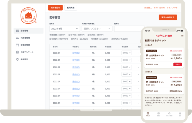 大人たちからの“寄付”によって、食事や見守りを必要とする家庭に毎月クーポンチケットを届け、地元の飲食店さんでアプリにあるクーポンチケットを提示すれば食事ができる新しい仕組みです。