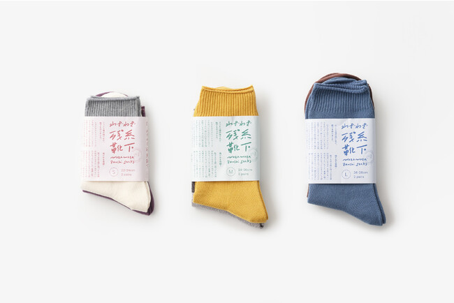 わざわざを代表するオリジナル商品として、靴下工場に余った糸を材料に作っている「残糸靴下」や「残糸ザンシンバッグ」があります。これらは工場から相談を受けた悩みを解決しながら、作り手・売り手として必要な利益を出すことができ、買い手であるお客様にとっても購買行動を通してゴミの削減に貢献できる製品です。