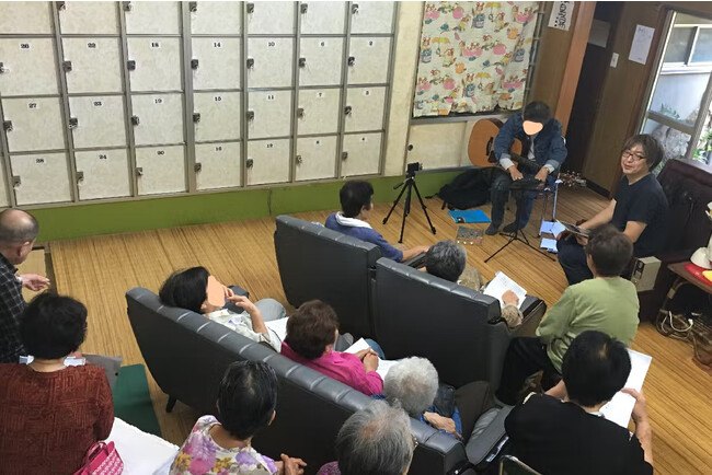 ギターの音色に合わせて歌うイベントを開催した際の様子