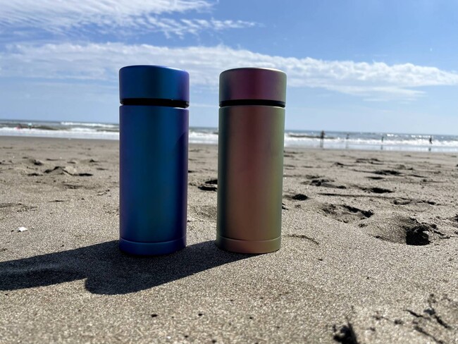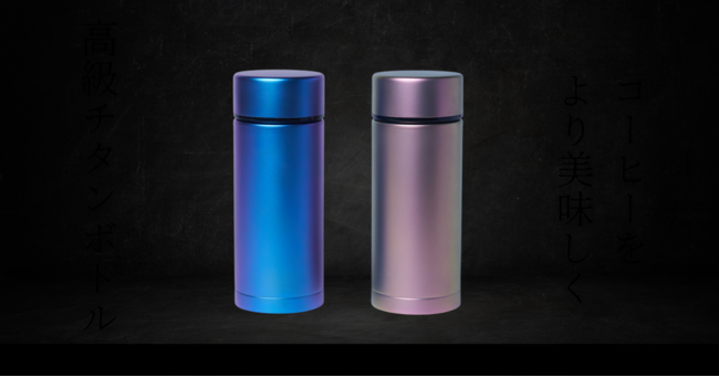 『pure titanium bottle』は、チタンの表面に処理されている光を反射させて色を出す膜(酸化被膜)を、ナノレベル以下の単位で調節する特殊な技術によって色付けしています。