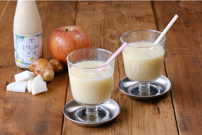 【甘酒スムージー】 材料:大根、生姜、りんご、もち麦とゆずの甘酒
