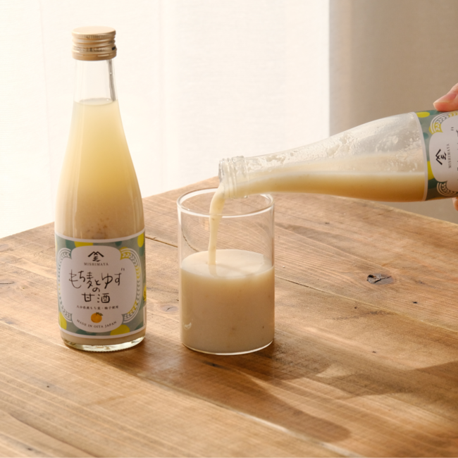 ー 主要原材料:米(大分県玖珠町産)、米麹(国内製造)、もち麦(大分県玖珠町産)、ゆず果汁(大分県産)