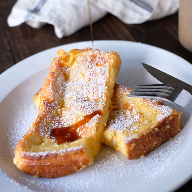 材料:食パン、もち麦とゆずの甘酒、卵、バター、はちみつ/メープルシロップ お好み、粉糖 お好み