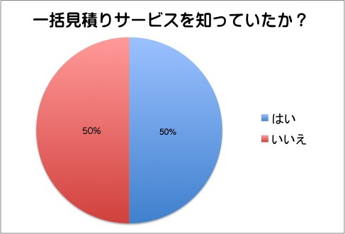 アンケートで「引越しの一括見積りサービスを知っていましたか」という質問に対しては、半数の人が知っていたと答えています。