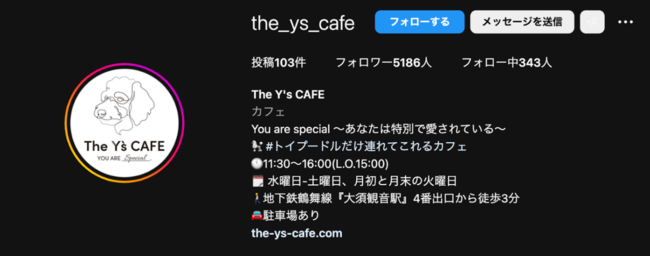 「The Y’s Cafe」では、お店の日常をお届けする公式InstagramやLINE@もご用意しています。イベント情報を発信する場合もあるので、お店の公式サイトと合わせてぜひチェックしてください。