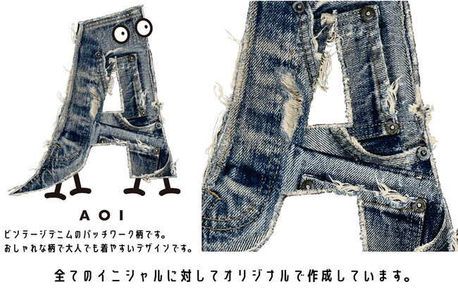 ※ビンテージデニムの写真を撮って構成したイニシャルは、服飾デザイナーとしてファッション業界で培った視点を活かしたAl-friendsのオリジナル。