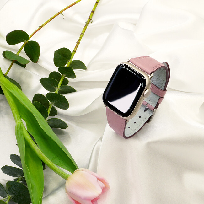 トレンドのくすみカラーを採用しピンクでありながら落ち着いた雰囲気に。オンオフを気にせず、コーディネートに合わせやすいのが特徴です。華やかさと大人っぽさをさりげなく演出し、イタリアンレザーの優しい風合いとともに手首を柔らかく上品に魅せてくれます。