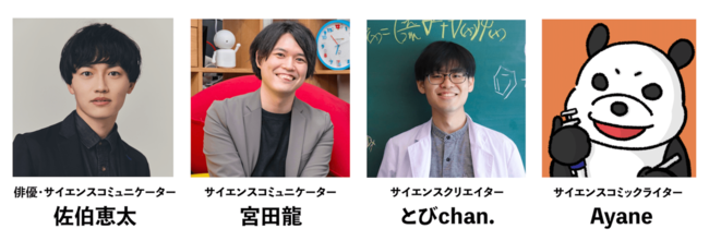 「asym-line(アシムライン)」は、科学とエンタメ領域の知識や経験、スキルを有したメンバー4名(佐伯恵太・宮田龍・とびchan.・Ayane)により結成されたチームであり、エンターテイメントの力で、科学と社会をつなぐためのプロジェクト
