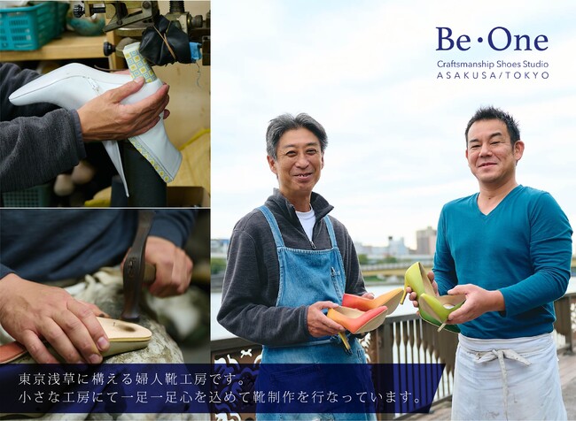 Be・Oneは靴の街浅草で、長年婦人靴を製造しているメーカーです。足のサイズは、一人ひとり違います。特に女性はパンプスなどのヒールの高い靴を、痛みをガマンしながら履いていることも少なくありません。そのような思いをすることなく、少しでも自分の足に合う一足を履いてほしいとずっと願いながら、婦人靴を製造してきました。 フランスの名品といわれたフランソワヴィヨンというブランドの婦人靴を、日本で長く生産してきたのがBe・Oneです。ヒールが高くても履きやすい木型の開発を繰り返し、美しさと機能性を兼ねそなえたパンプスを生産してきています。