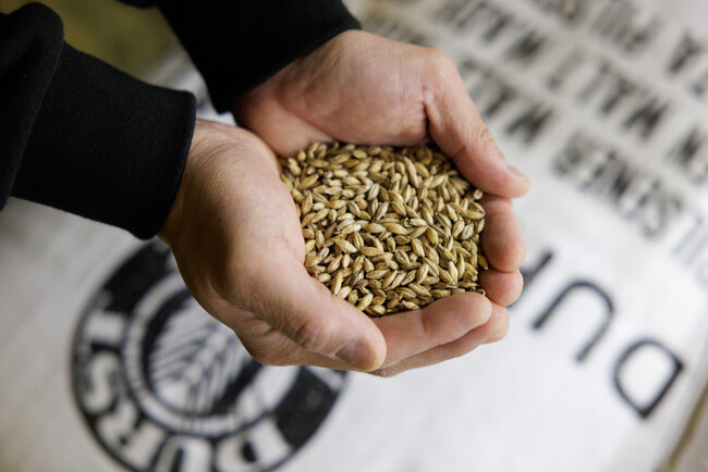 モルトは、ドイツ産とカナダ産を混ぜて使います。麦のうまみの強いドイツ産モルトと、酵素力が強くすっきり仕上がるカナダ産モルトを、経験的にベストな分量で配合しています。