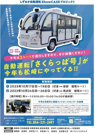 令和5年10月17日(火)から26日(木)にかけて、静岡県賀茂郡松崎町で「しずおか自動運転ShowCASEプロジェクト」自動運転実証実験が行われる。
