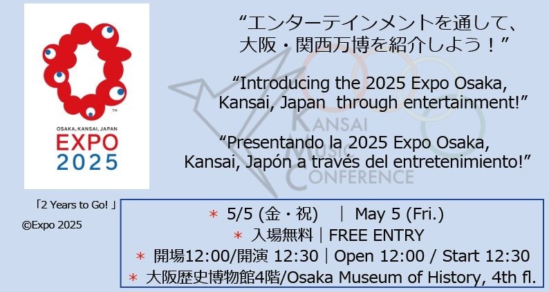 大阪・関西万博の開幕2年前という節目に、TEAM EXPO 2025 プログラム/共創パートナーであるKMC実行委員会は大阪・関西万博をより国際的な視点からアピールするために、5月5日に大阪歴史博物館で国内外のエンターテイナーや一般の方々を交え、共に大阪・関西万博とSDGs活動を推進いたします。