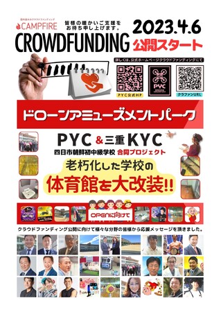 愛知県でドローン事業を運営するPYC株式会社は、この度、4月6日にCAMPFIREにて、本新施設(三重県四日市市)OPENの為のクラウドファンディングを実施。
