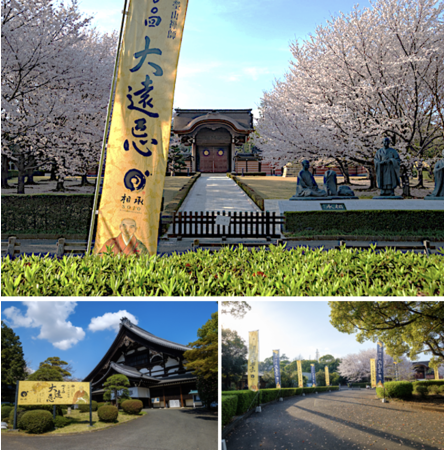 ∟總持寺の参道には700回大遠忌を記念して制作された100本ののぼりや、メインビジュアルの看板を設置