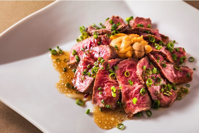 食材すべてにこだわった逸品料理では、佐賀県唐津産のウニを使用したお肉のお刺身も。