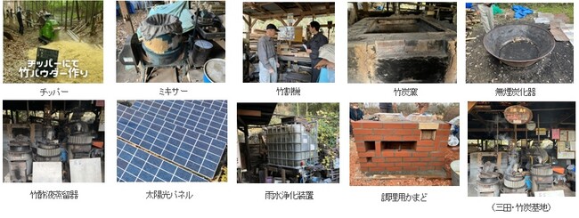 竹チッパー、生ゴミミキサー、竹炭窯、無煙炭化器、竹酢液蒸留器、太陽光発電装置、バッテリー蓄電池、雨水浄化装置、循環型トイレ、暖房用のロケットストーブ、調理用のかまどなどで構成されており、各地域ごとに、必要な設備だけ選択して導入できます。