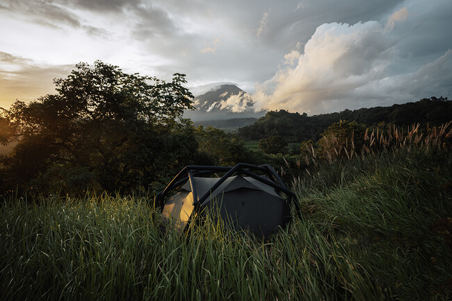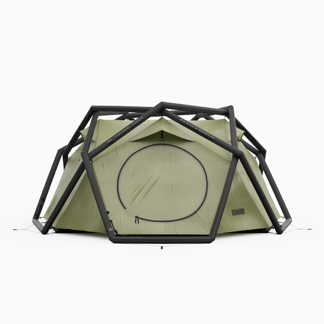 テント本体にはHEIMPLANETのアイコン的モデル「THE CAVE」が採用され、フライシートはオリーブグリーンを基調としたカラーを使用しています。過酷な環境にも耐えられるジオデシックドーム構造を採用したテントは世界中の探検家に愛用されています。インフレータブル構造により、1分もかからずに簡単に設営できるので、あらゆるアウトドアシーンやアドベンチャーで最適なパートナーになることでしょう。
