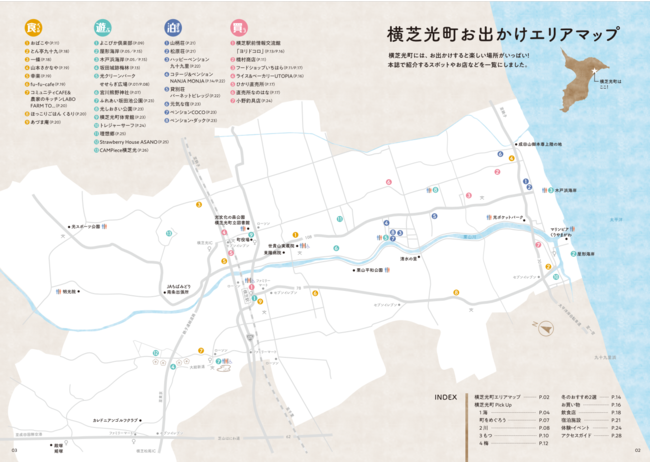 この状況を決して諦めず、自分たちの暮らしを楽しみながら「より良い町に」と挑戦を続ける女性たちによる観光ガイドブックをぜひ一度ご覧ください。ガイドブックをバッグに入れて、風の音が聞こえる「横芝光町」にぜひ遊びにいらしてください。