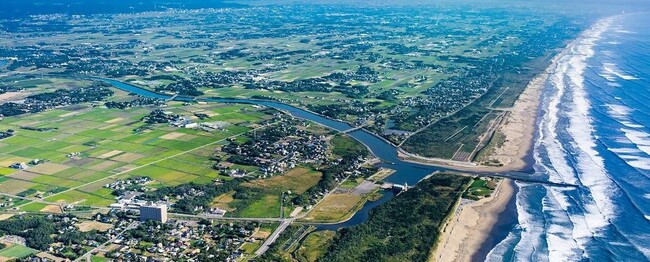 横芝光町は千葉県北東部に位置し、東京から約80分(約70km)、千葉市内から約40分(約35km)、成田国際空港から25分(約20km)の距離にあります。「日本の白砂青松100選」と「日本の渚百選」に選定されている全長約66kmの自然公園『九十九里浜』のほぼ中央に位置し、九十九里浜に2つの海岸を有しています。そのひとつの木戸浜海岸は、「アカウミガメ」が産卵する北限の地です。また、町の中央を流れる栗山川には、鮭が自然回帰をします。横芝光町は、黒潮の影響を受け、夏は涼しく、冬は暖かい海洋性気候により、とても暮らしやすい町です。
