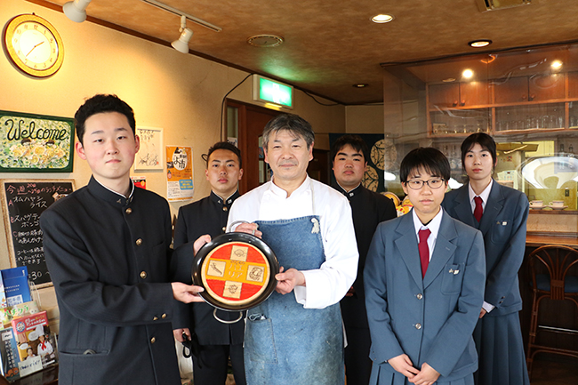 堅くて丈夫な栗の木を材料に使ったスペイン国旗のカラーリングが印象的なパエリアパンは、野田村の人気の洋食屋『みなみ』に贈呈されました。今後、野田村の飲食店でも少しずつ野田村パエリアの提供がはじまっていきます。