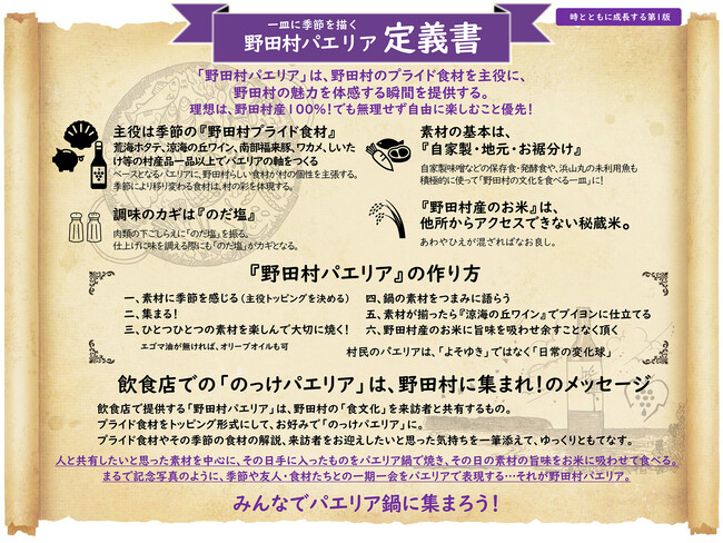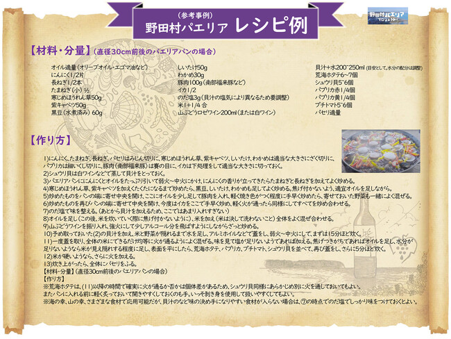 そして最後に、4回のツーリズムを通じて見えてきた野田村パエリアの定義を紹介します。基本のレシピも添えてありますので、気になった方はぜひ『野田村パエリア』を自由に楽しんでみてください。
