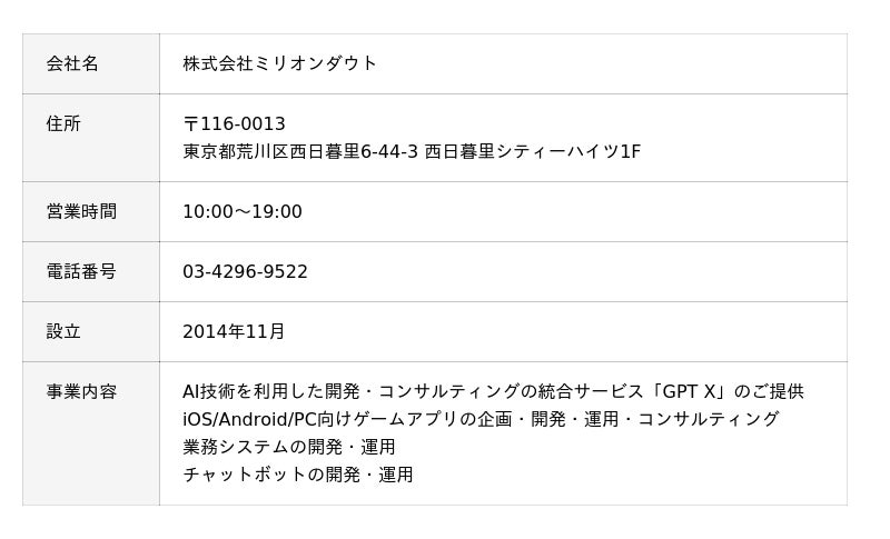 大きな反響を受け、ミリオンダウトはAIを活用した開発やコンサルティングの統合サービス「GPT X」を提供します。