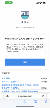 GPTAPPはユーザーがほしいWebアプリの説明を書くだけで、ChatGPTが30秒程度でWebアプリを生成しWeb公開するサービスです。
