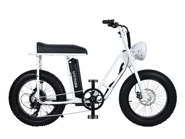 Urban Drivestyle(アーバンドライブスタイル)のファーストモデルであるUnimoke MK(ユニモーク MK)は、ロングシートが特徴的なクラシックバイク型電動アシスト自転車です。一見バイクにしか見えないそのクールなデザインは、ブランドのプロトタイプとして絶大な人気を誇ります。