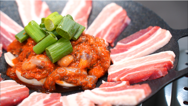 また、移転に併せた新メニューとして「さんさん亭」初となるチュクミ(イイダコ)を取り入れた"チュクミサムギョプサル食べ放題"(90分、2,800円~)をスタートします。「さんさん亭」独自のタレが創りだすチュクミの旨味と柔らかな食感を是非お楽しみください。