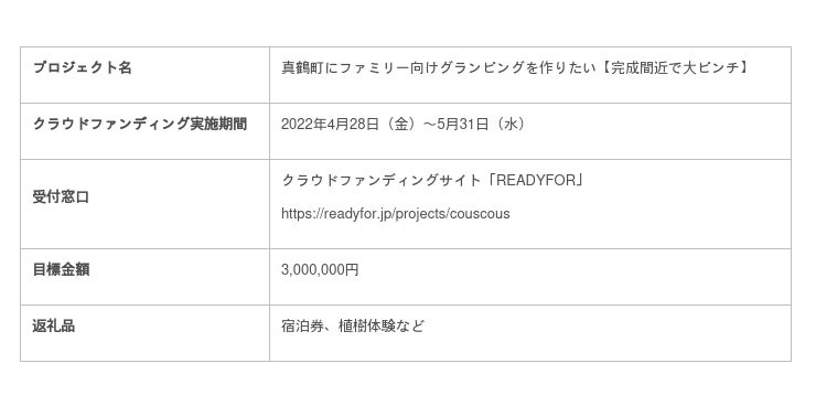 【「クスクスグランピング真鶴」クラウドファンディング概要】