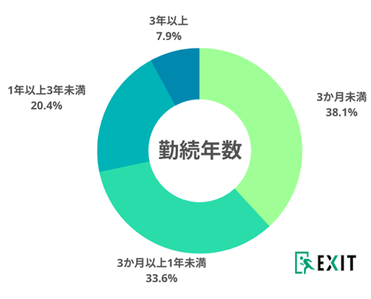 勤続年数が1年未満の利用者は71.7%、3か月未満で退職している人は年々上昇傾向にあります。