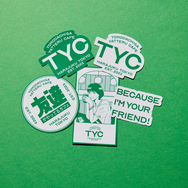 ■Tシャツやステッカーなどのグッズも 「友達がやってるカフェ」オリジナルグッズも店舗にて販売中です。 ステッカーってどんなのある?(ステッカー) 1枚 ¥300 / 5枚セット¥1000