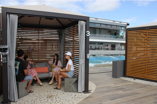 サーフデッキに位置する6つのサーフサイドカバナでは、ソファ席、サウンドシステム、ウェーブのライブ映像、その他のアメニティと共に優雅な時間をお過ごしいただけます。また、シャワー、ロッカー、コンシェルジュサービスを備えたプライベートラウンジのナロカイクラブもご用意しています。