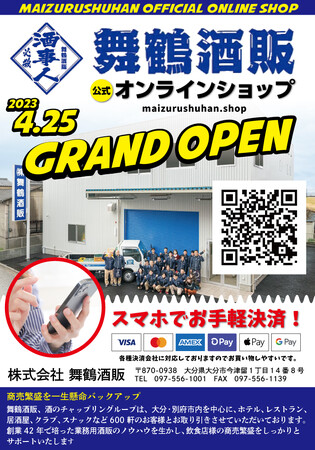 舞鶴酒販の公式オンラインショップが4月25日(火)にオープン!定番から限定品まで圧倒的な品揃えを誇る酒類専門ショップが登場今夏には、日本国内の酒造会社や蒸溜所から調達した高品質なお酒のみを取り扱うOEM製造受託も開始酒類の卸売販売と小売販売を行う株式会社舞鶴酒販(本社所在地:大分県大分市、代表取締役社長:玉井鉄之、以下:舞鶴酒販)は4月25日(火)に、公式オンラインショップをオープンいたします。圧倒的な品揃えを誇る舞鶴酒販のオンラインショップでは、直営ならではの目玉商品やオリジナルのサービスもご用意しました。こだわりの地酒や季節限定酒も全国に配送いたしますので、是非ご活用ください。▼舞鶴酒販オンラインショップURLhttps://www.maizurushuhan.shop/