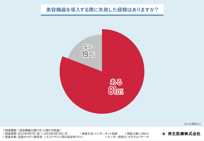 「美容機器を導入する際に失敗した経験はありますか?」と質問したところ、8割以上の方が『ある(81.0%)』と回答しました。