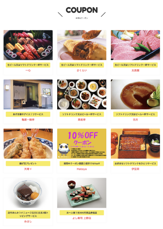 4/26(水)~5/19(金)の期間中、下記店舗にて公式サイトのクーポンページを表示した画面、またはクーポンページの印刷をご呈示いただけますと各種サービスが受けられます。
