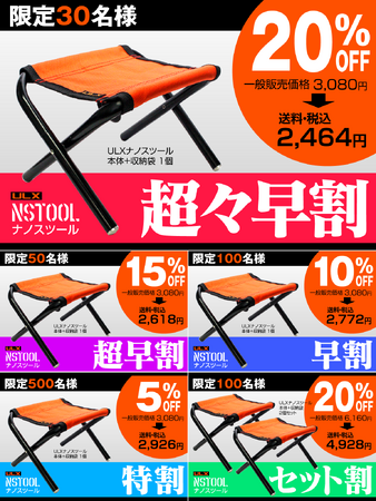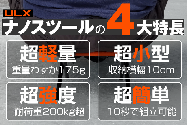 究極の軽さと強度を高次元で両立したアウトドア用パイプイス『ULXナノスツール』をクラウドファンディングで販売開始します。