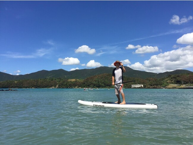自然体験は、プロのガイドのもとでSUPやカヤックといったマリンアクティビティを(目の前には透き通る海が広がっています!)。