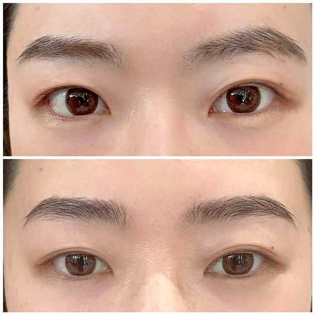 下に向かって生えていた眉毛の癖が改善し、左右差のない理想の平行アーチ眉に。