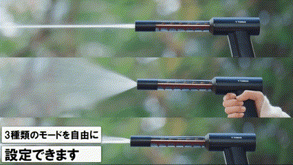 トリガーを押すだけで放水開始!自動開閉機能で手の負担を軽減。3種類の噴射モードから柔軟に調節でき、用途に合った噴射モードで楽々洗浄が叶います。最大3倍まで伸ばせる伸縮型ホースは、収納の手間が省ける上に
