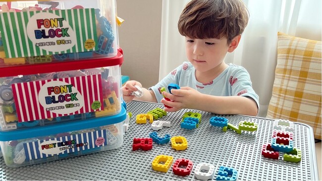 「MOJI BLOCK」のブロックはアルファベットや数字、ハングルの形をしているため文字や単語、数式などを組み合わせるほか、立体創作して遊ぶことができます。ブロックテーブルや学習テーブル、砂遊びや水遊びなどマルチ遊びに変身できる折り畳み式のオリジナルテーブルも用意しています。今回は第1弾としてお子様向けの英語や数字のブロックと自分だけのオリジナルな時計が作れる時計セット、韓国語を学ぶ初心者向けのハングルブロックなどの豊富なラインナップを用意しています。