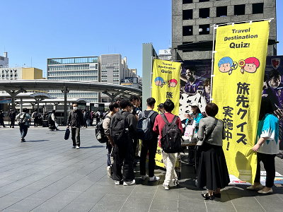 旅先クイズ会では、その地域の住民も、一緒になって参加することが高頻度であります。住民目線としては、急に現れたブースに興味をもち、来られるようです。これは、観光客と住民の交流につながるだけでなく、観光客へのマナー周知を行っている事実を住民に伝えることができ、住民の安心にもつながります。