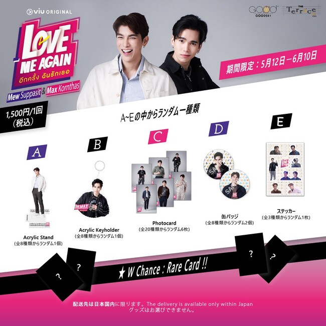 2023年5月12日(金)より第一弾として、タイドラマ「Love Me Again」のに出演するタイ俳優の写真を使用したグッズのオンラインくじを販売いたします。